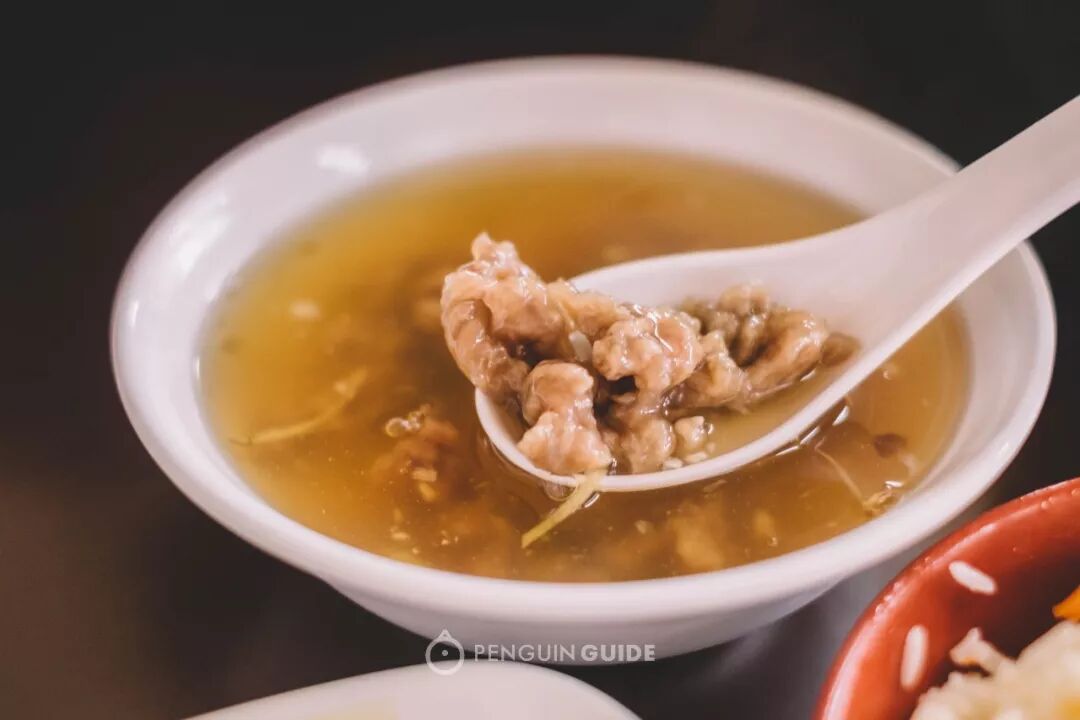 牛肉羹也不错,牛肉切丝腌制入味,然后加地瓜粉手工抓打,吃起来特别滑嫩。