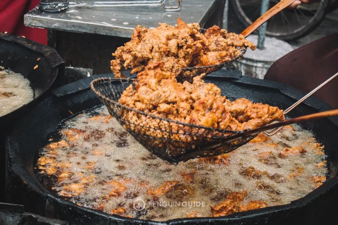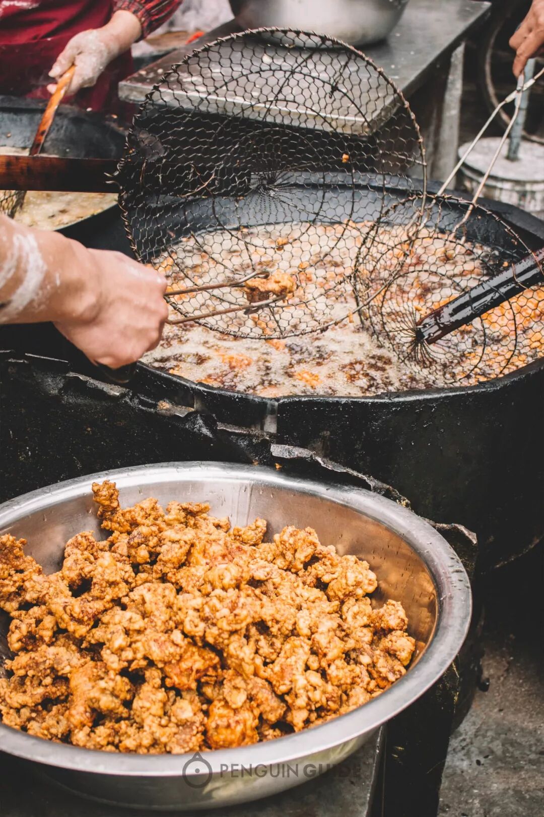 炸醋肉、炸菜粿、鸡腿怣(yóu)、石花膏、四果汤、土笋冻、菜头酸、绿豆饼、麻粩、蒜蓉枝........没必要执着家家打卡,不过记得留意下某些小摊的出摊时间,毕竟去晚了食物分分钟被秒光。