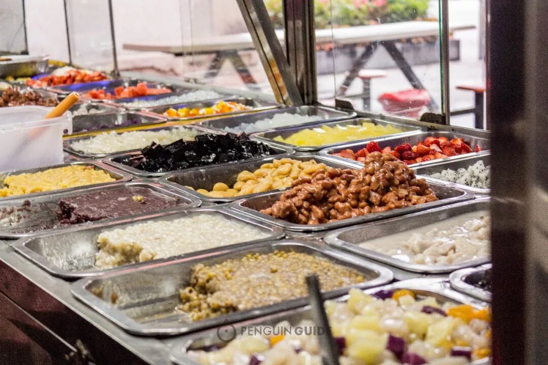 担心下午会饿?怎么可能!炸醋肉、炸菜粿、石花膏四果汤、海蛎煎、土笋冻、润饼菜、绿豆饼、蒜蓉枝.......无穷无尽的小吃在等你。顺便说,这边的奶茶真的很好喝😂