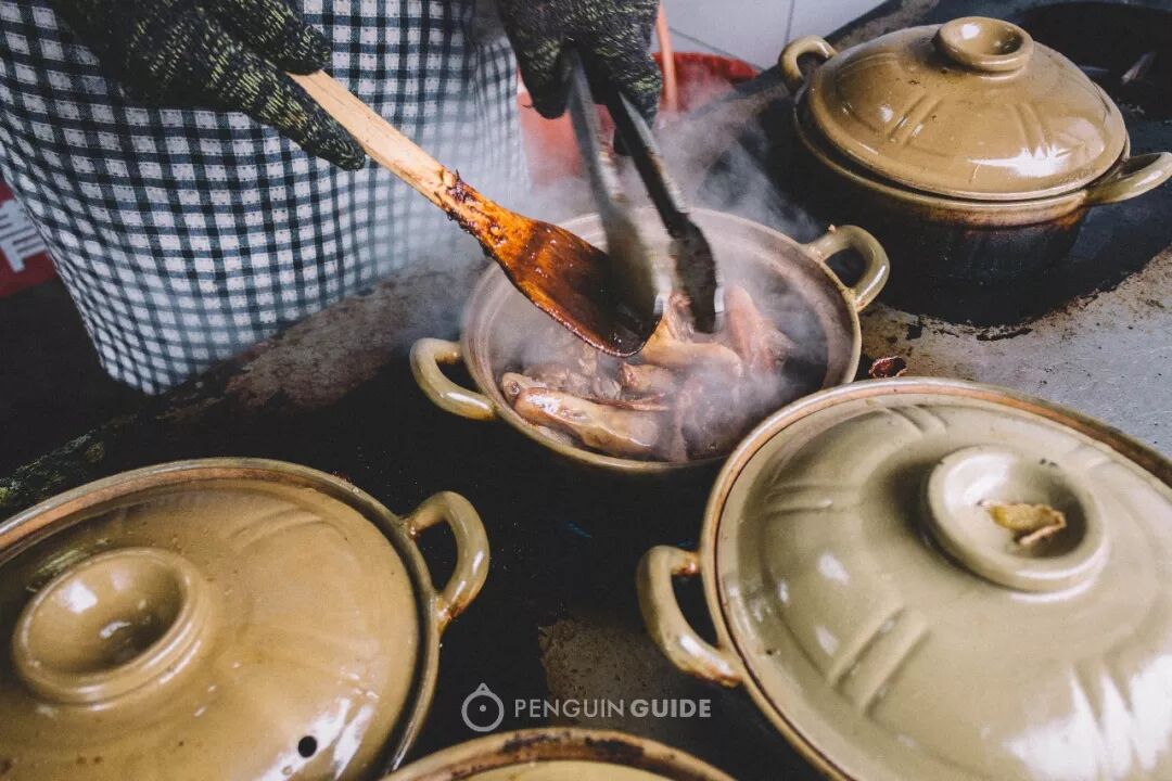 临街的店面是制作区,一排排砂锅由两个小哥轮流照看,确保每一锅都是现做同时兼顾出品速度。