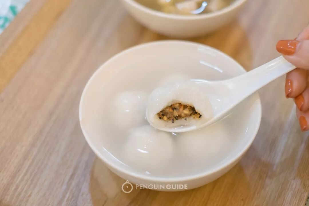 主打元宵圆。元宵白白胖胖,咬一口香甜软糯。内馅扎实饱满,花生碎、芝麻和着葱头和猪油,越嚼越香。