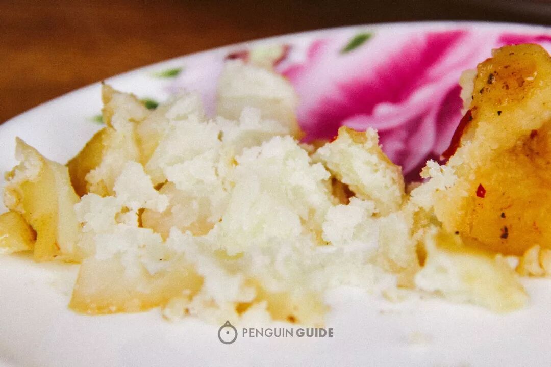 葱段粗大,入口还有鸡汁的味道。土豆香软,有多软呢?用筷子轻轻一压,就变成了土豆泥!