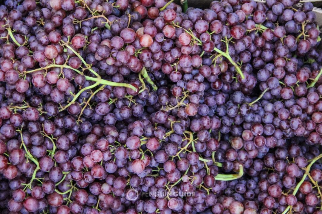 玫瑰香葡萄颗颗浑圆,果皮较厚呈深紫色,刚采摘的玫瑰香葡萄有一层漂亮的果霜,果肉软而多汁。味道构成则更立体一些:果皮稍酸,果肉则融合了完全成熟后的莓果甜和花香。