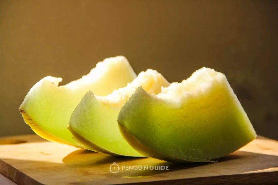 白兰瓜虽然颜色上看着清淡,但其实甜度上完全没输。口感上肉质更酥面一些,不是脆甜的类型。