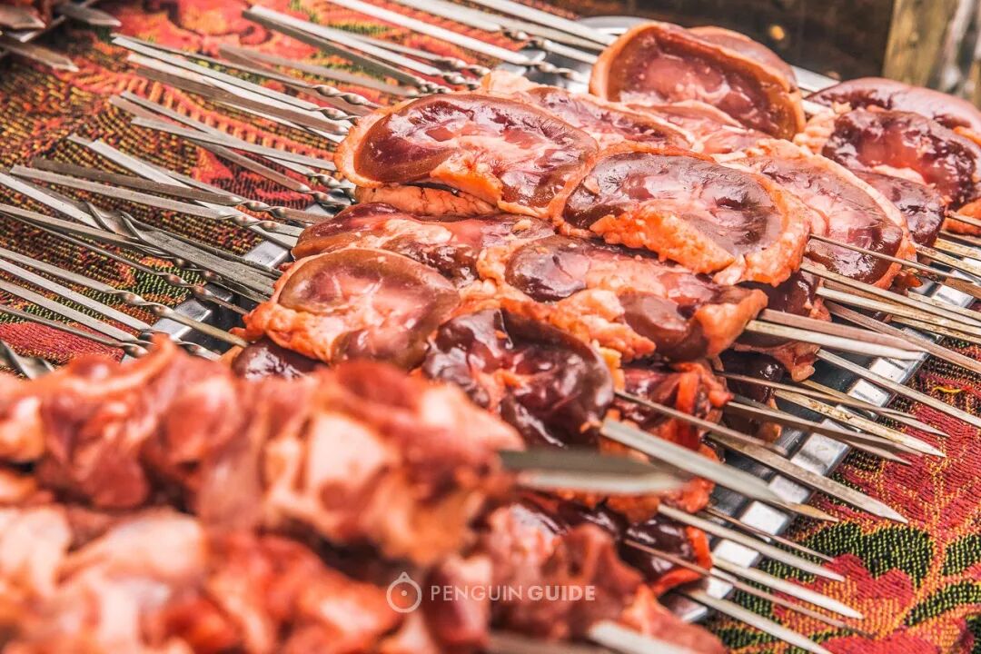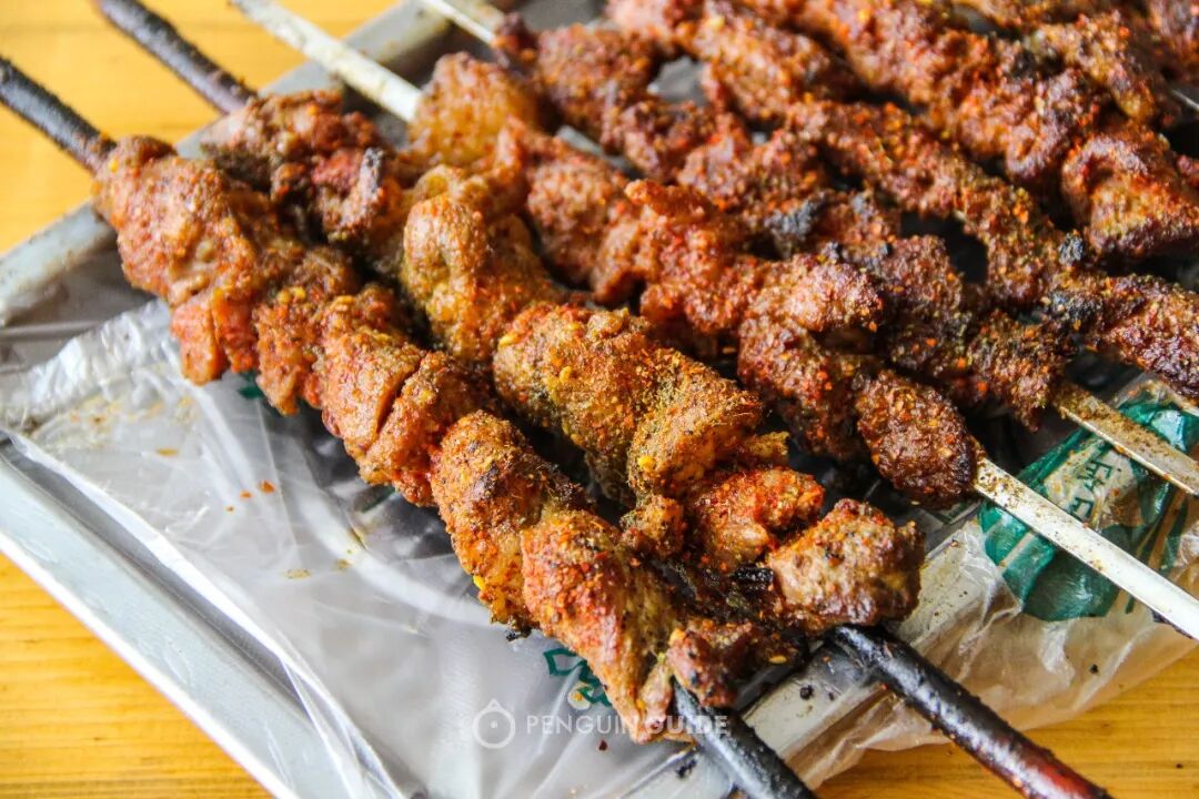 在这里,任意一个烤肉摊都会有烤肉筋牛板筋羊肝羊心羊腰子,劳道一点的也许会有红柳烤肉。