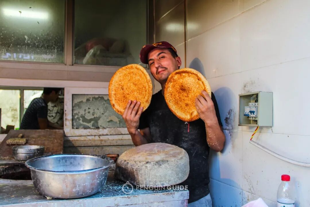 馕边的口感就好像没有芝士的披萨边,而中央部分吃起来又像脆脆的烤饼干!