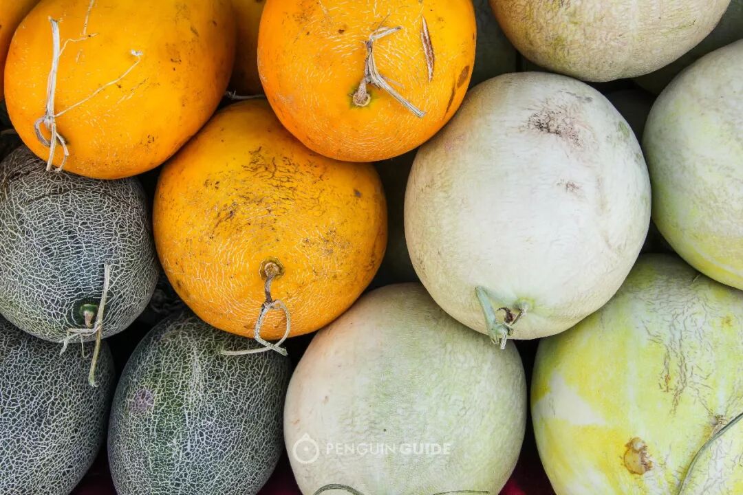 现在市面上的甜瓜品种很多,比如白兰瓜,哈密瓜(17号)和金皇后。如果你国庆节左右来,还会有黑眉毛,伽师瓜等晚熟品种上市,可以甜蜜好久好久呢。