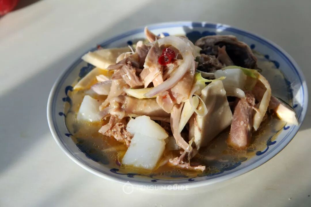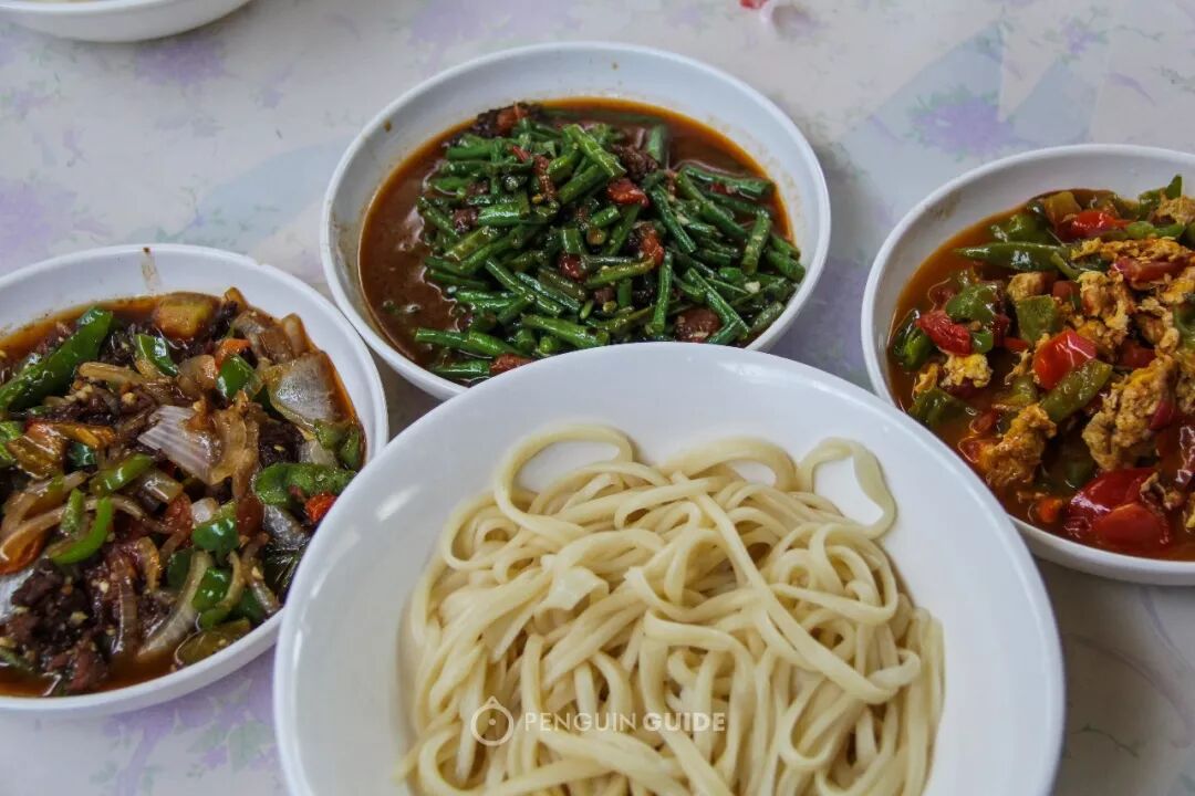 比较地道的吃法就是一桌人多点几种拌面,菜上来了每一种菜都连菜带汤往自己盘子里拨一些,搅拌均匀后开吃,每口都是不一样的味道。