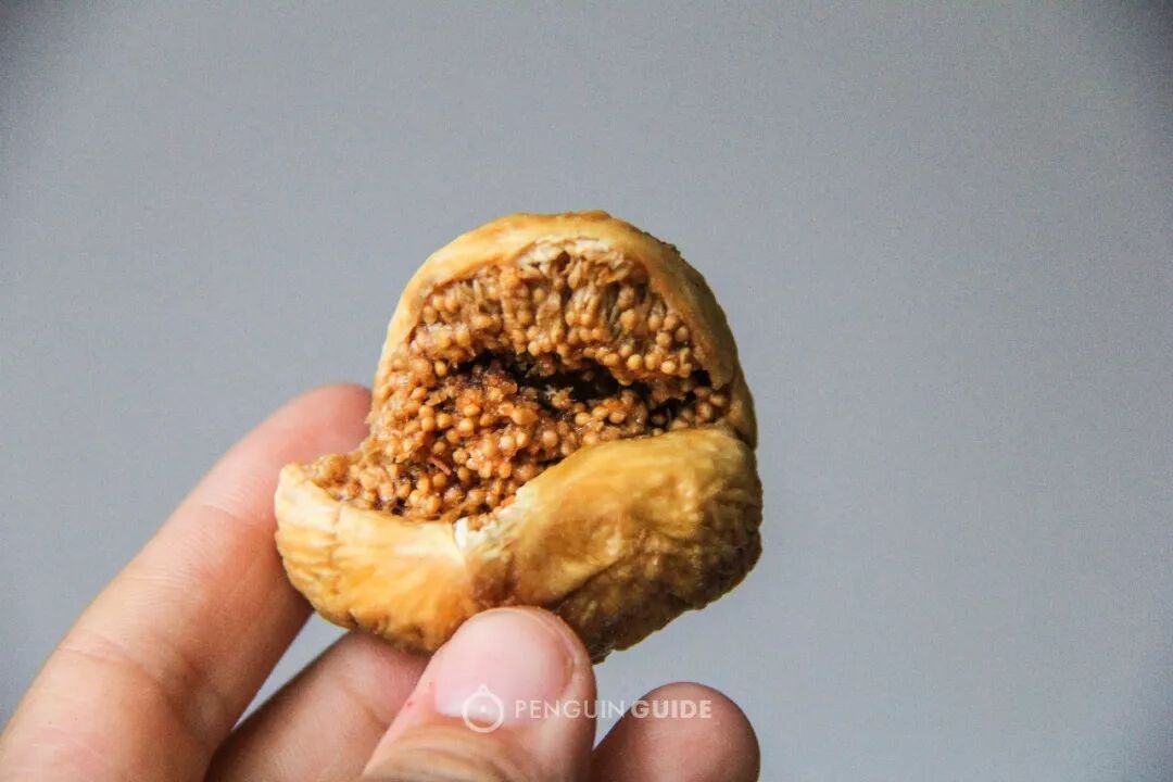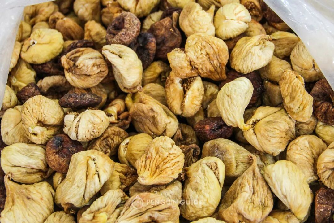 因为含糖量高的原因,无花果干中肉眼可见蜜糖般的结晶。市面上除了这种巨型无花果干,也有小而乖巧的圆形无花果干。请记住,小的更甜!