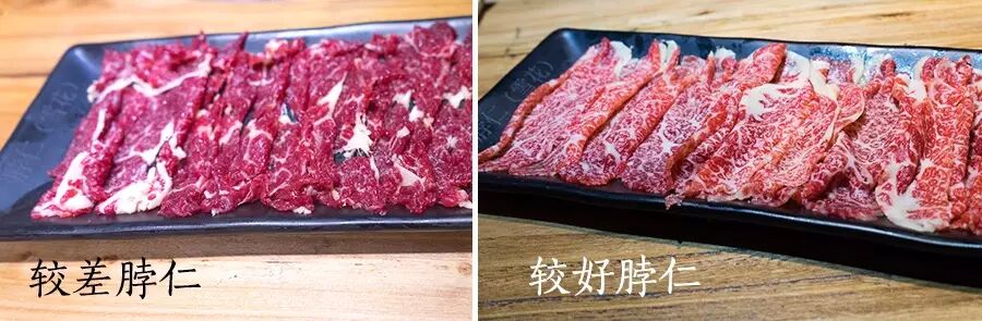 脖仁其实在其他料理中也用到,比如日式烤肉的牛梅花肉,西餐里的chuck eye log,但脖仁的范围比牛梅花肉和chuck eye log更小。一头一千斤的牛切出的脖仁往往只有一两斤。