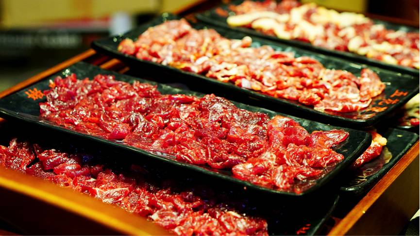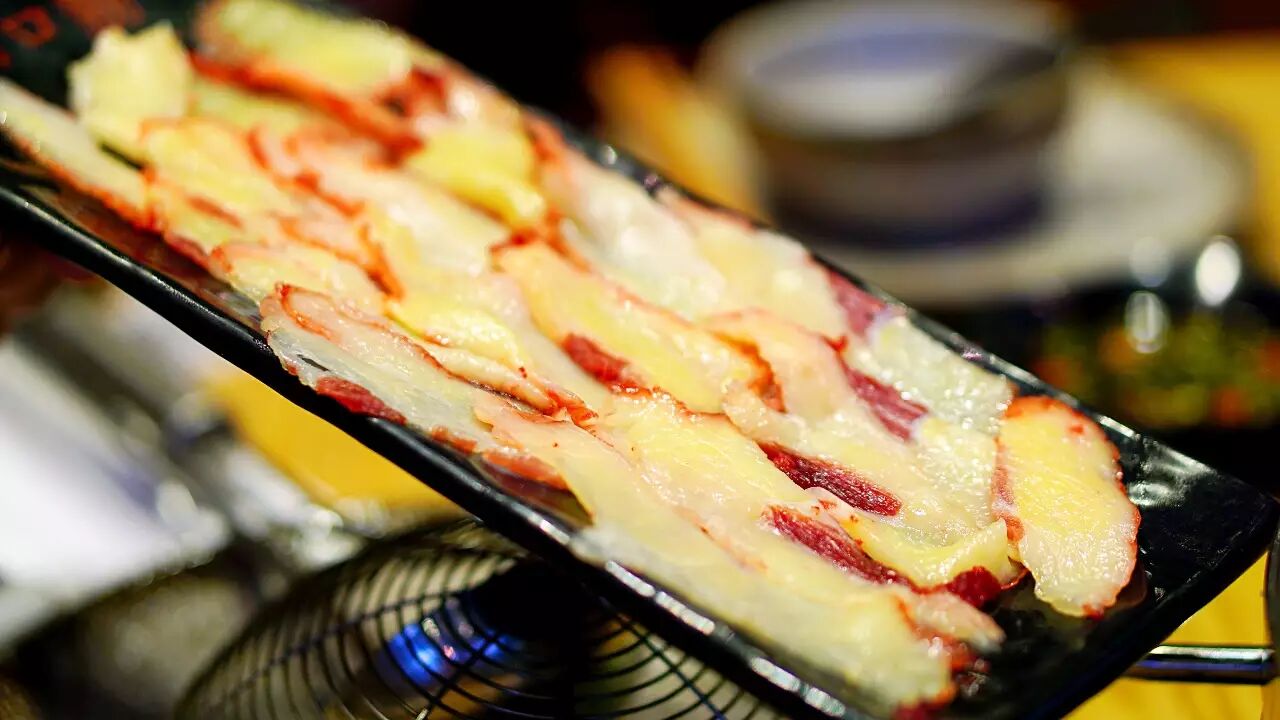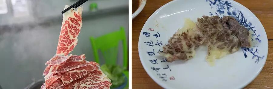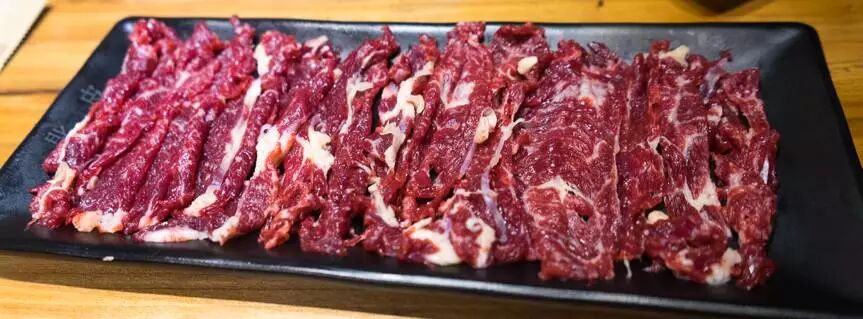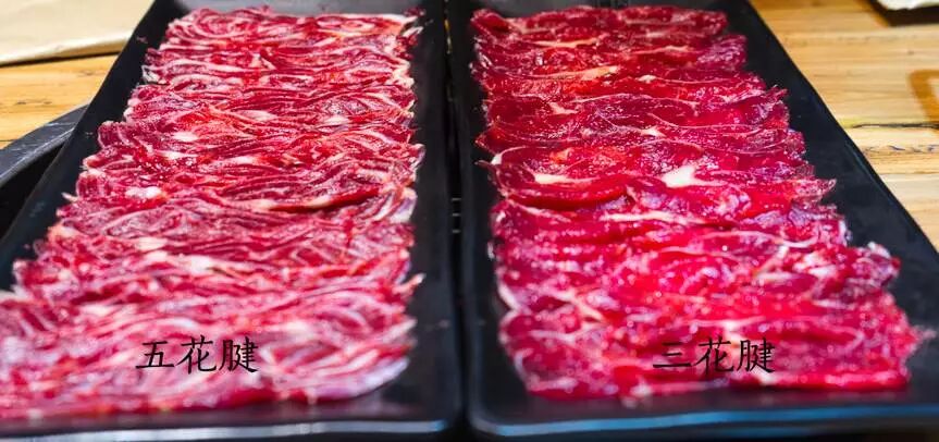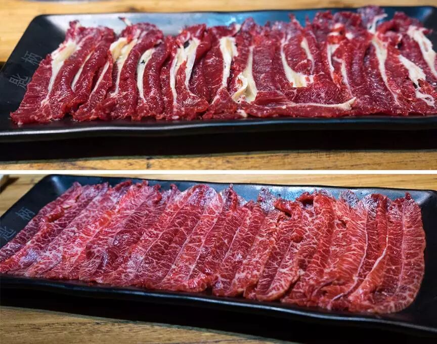 肉质神奇之处就在于,用于涮火锅通常切的比较薄,因此烫过后特别脆,而如果在日式烧肉中厚切,却异常柔软鲜美。