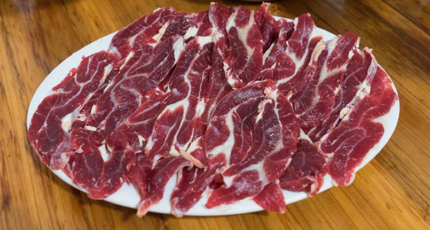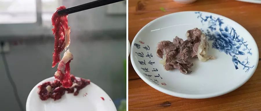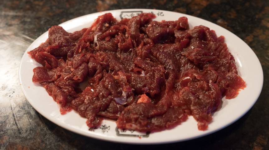 务必先把所有牛肉涮完了,再加别的食材。另外,对于肥肉较少的部位,比如吊龙和嫩肉,下锅前滴几滴油在肉上拌匀,烫出来的肉格外细嫩。