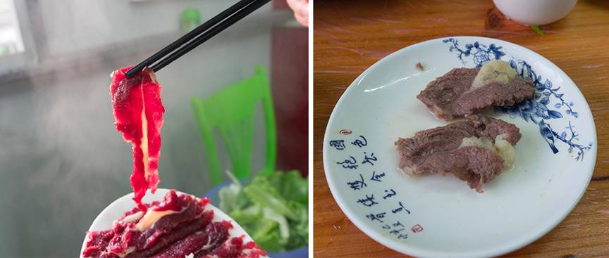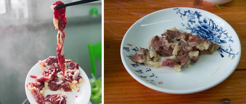 有些地处郊区的店家,就在店后面养牛,自家用肉自给自足。