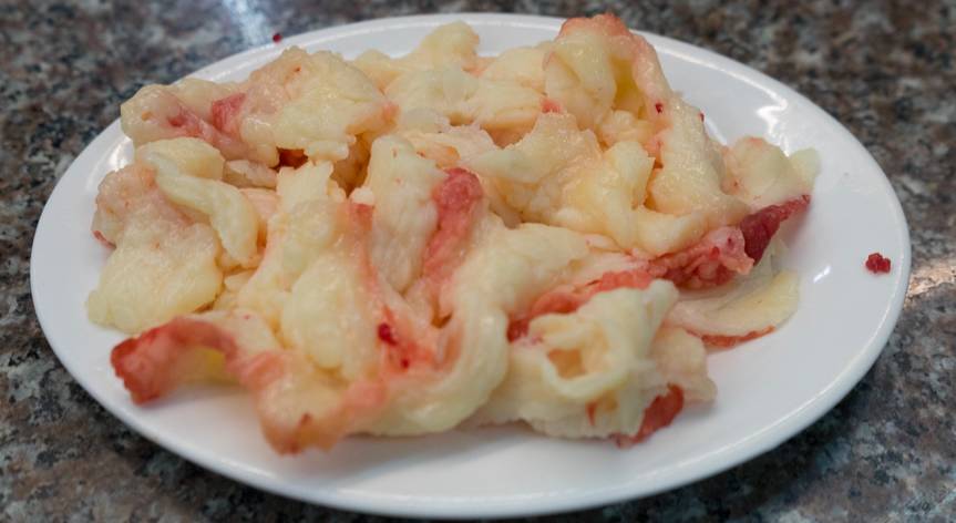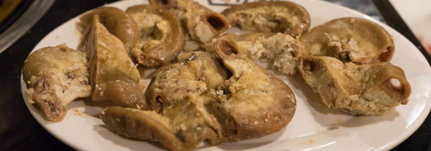 小肠前段,学名十二指肠,煮熟了以后内部镶嵌的乳糜口感粉糯,重重的下水气息。内脏爱好者大爱,同样也有人闻之皱眉。
