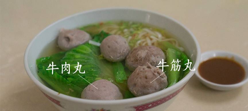 牛肉丸用的是较好的腿肉,表面光滑气孔细小均匀,放进嘴里咬一口,弹脆紧实。如果甩在地上,当真可以弹跳起来。