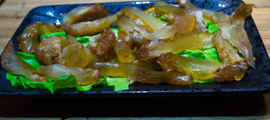 牛韧带,煮后透明,极有嚼劲,总是给人可以美容的感觉。