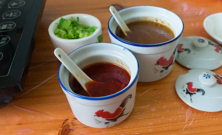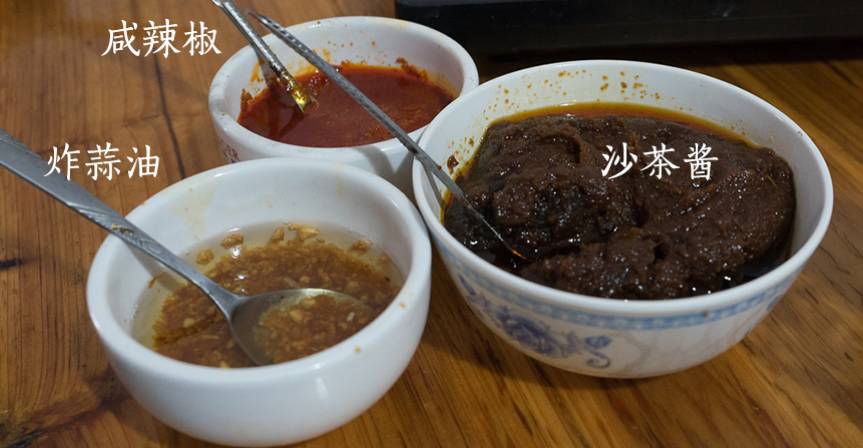 4. 蘸酱:沙茶、普豆、辣椒和其他