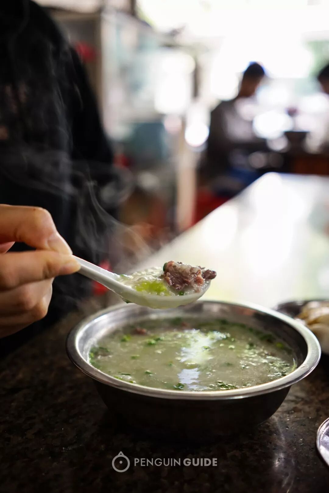 这里的物价似乎还停留在十年前, 6元一碗牛肉粥(加一份肉也只要一块钱!),每勺都是满满牛肉碎。据说阿姨们凌晨就起来熬粥,投下大量猪骨,把米粒熬到开花,不放味精也自带鲜甜。