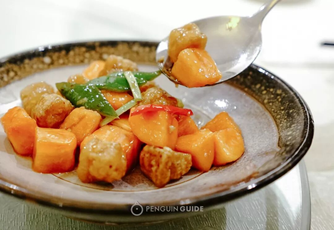 每道菜都精工考究:咕噜肉用应季红薯提出甜度,咬落爆浆;脯鱼干烧面香气逼人;生炒糯米饭货真价实现炒现上,粒粒分明……