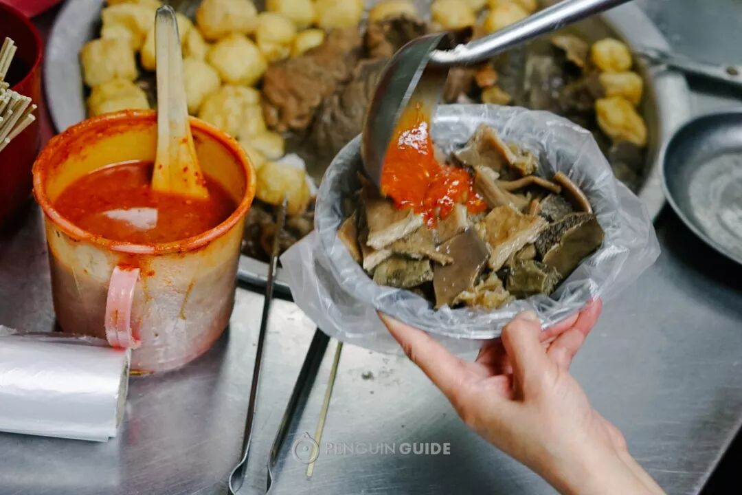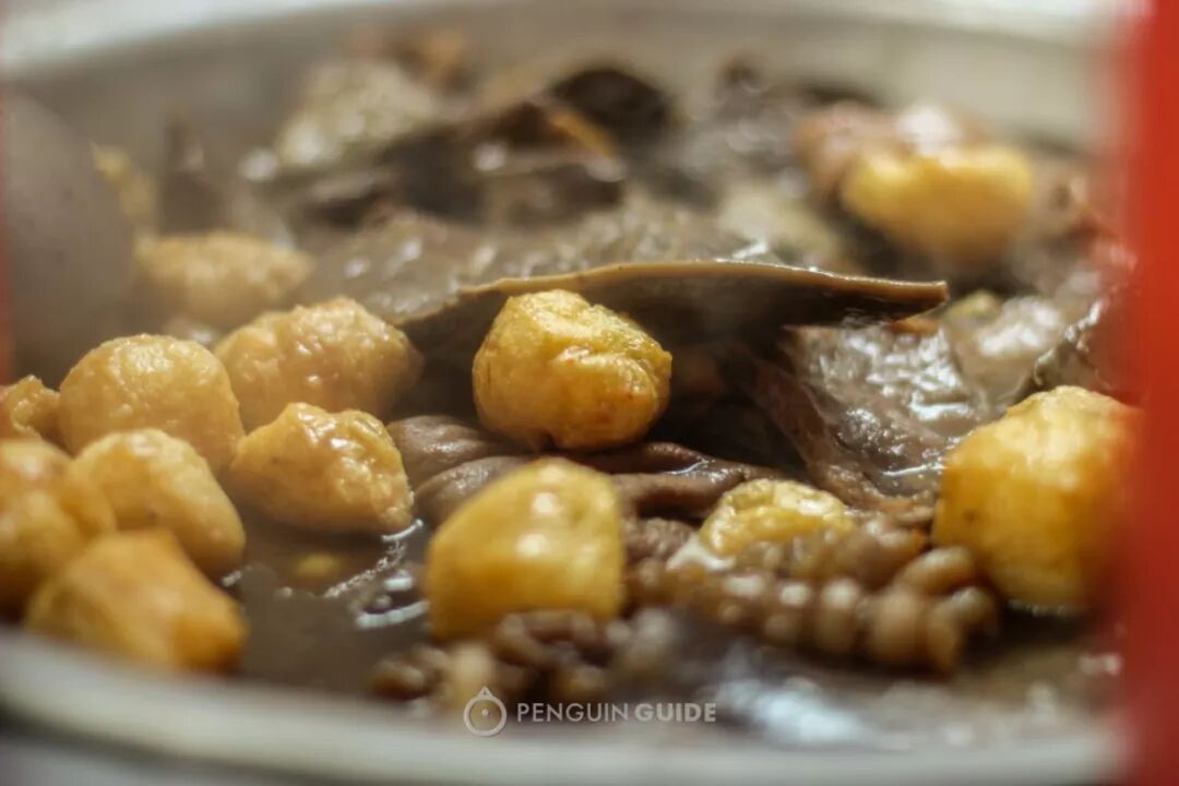 牛杂新鲜、处理干净,而最高妙的地方还要数卤汁底。不像其他店只有单一酱香或咸味,美贤的卤汁层次丰富,十几种香料和酱料经过日复一日熬煮,沉淀出醇厚复杂的风味。