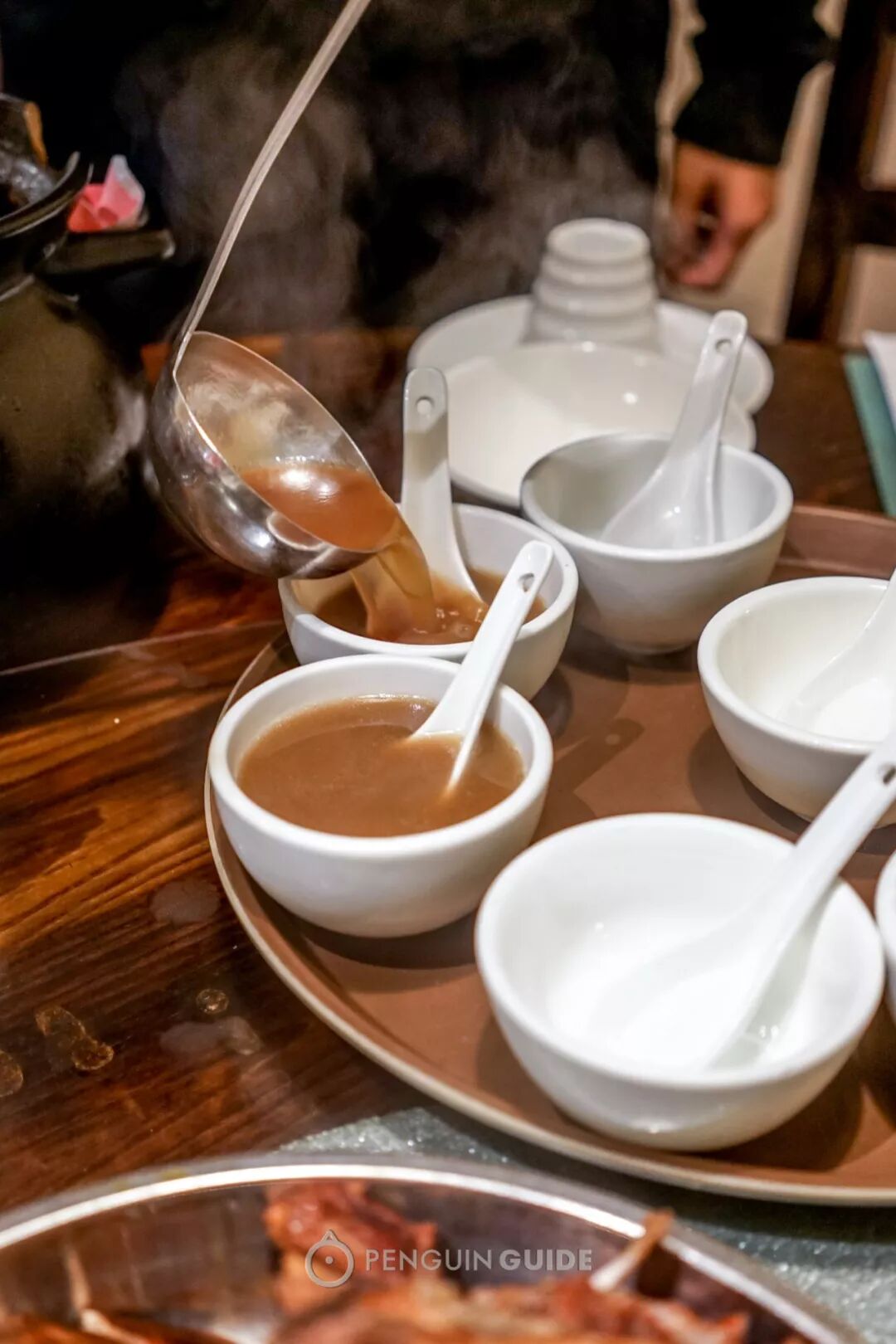 汤端上后须先捞汤渣“验明正身”,料有多足,看看堆成山的汤渣就知道了。