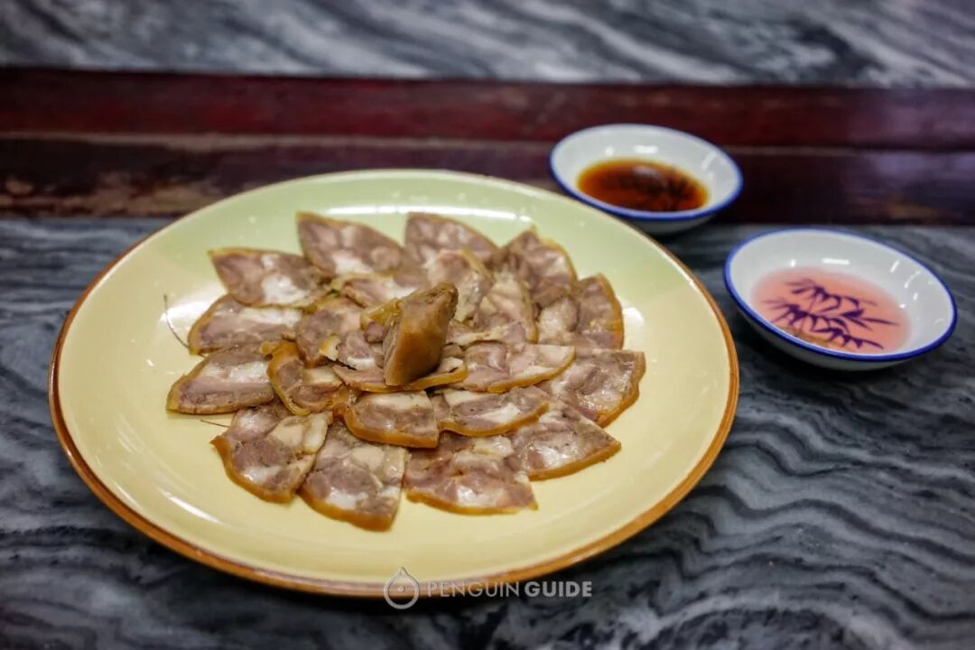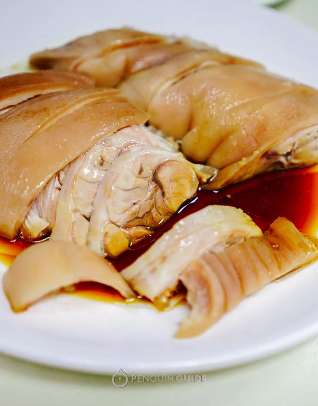 白切猪手是每桌必点招牌。整只猪手切成薄片,铺在白瓷盘里,更显细腻粉嫩,像是五大三粗的壮汉无端生出几分娇羞感。