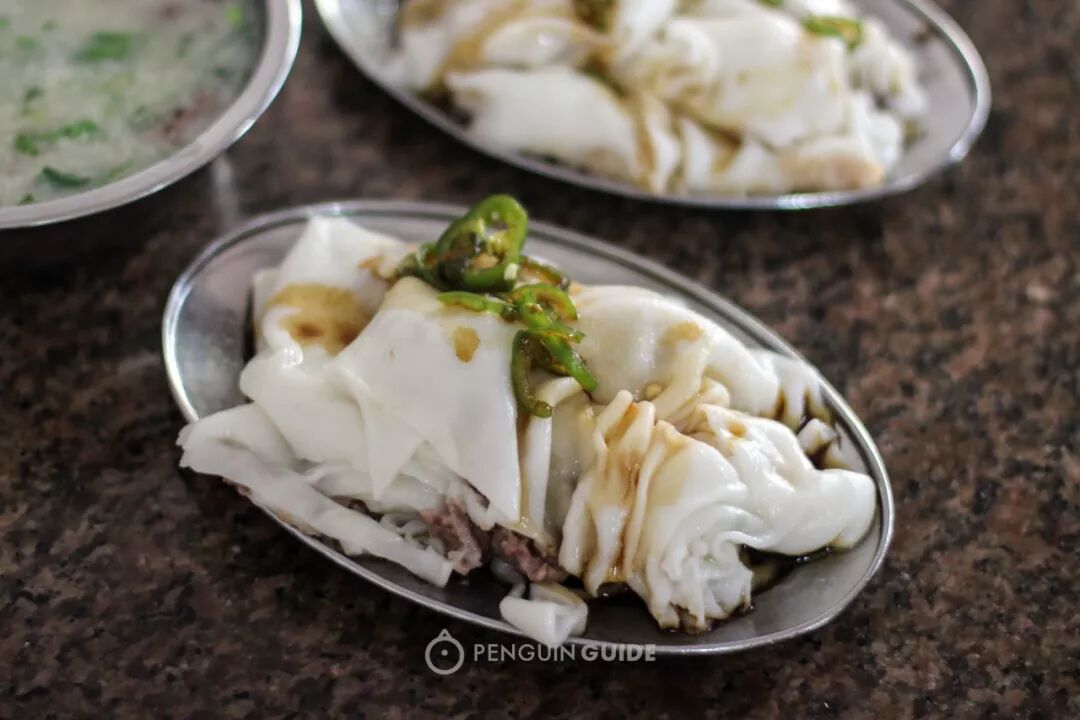 佛山肠粉大多用纯米浆制成,口感不粘,米香十足。酱油偏咸口,还会加尖椒圈提味。