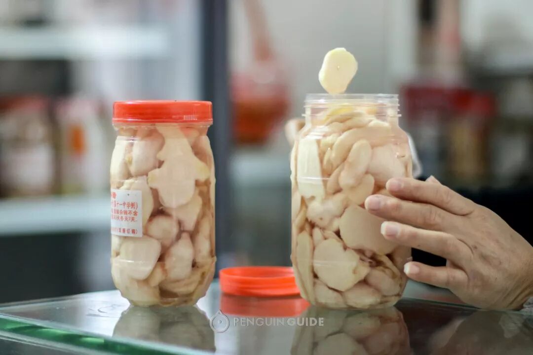 在辉记隔壁,还有家藏在菜市场巷子里的珍姨姜醋,猪脚姜也很有名。姜的口感很特别,粉而软,近似马铃薯。