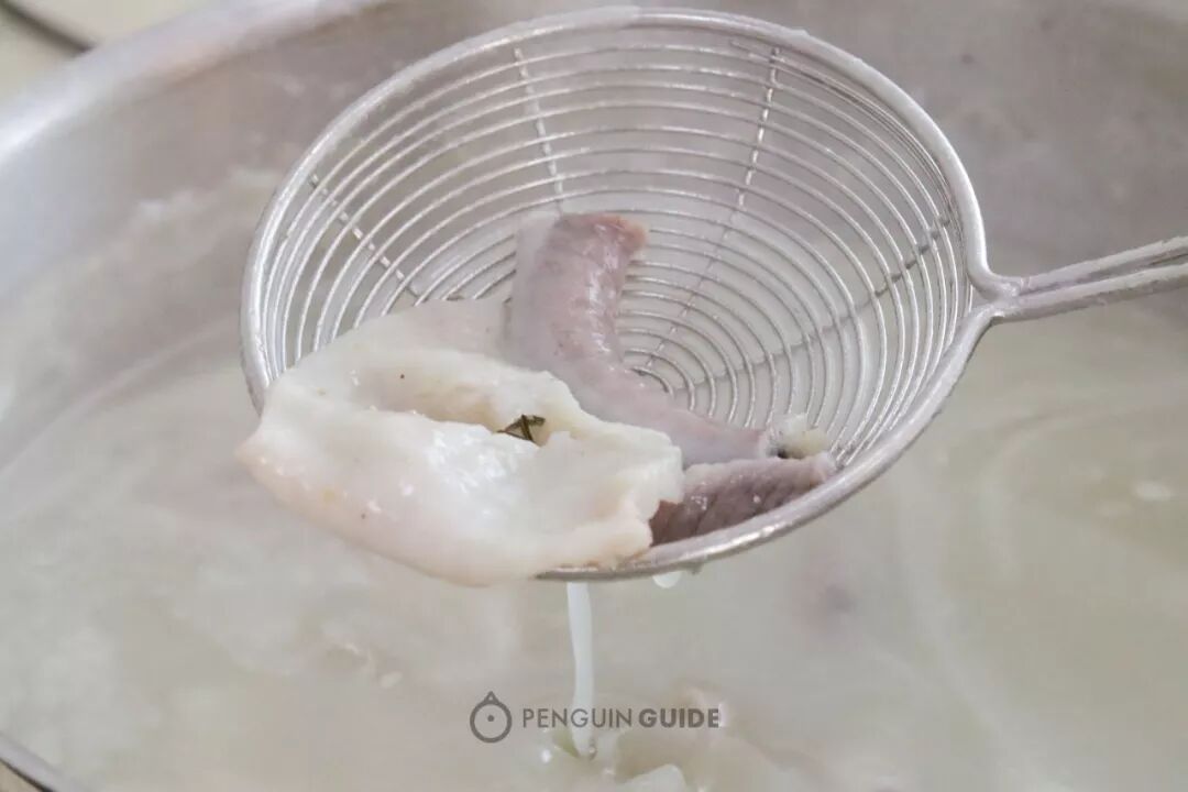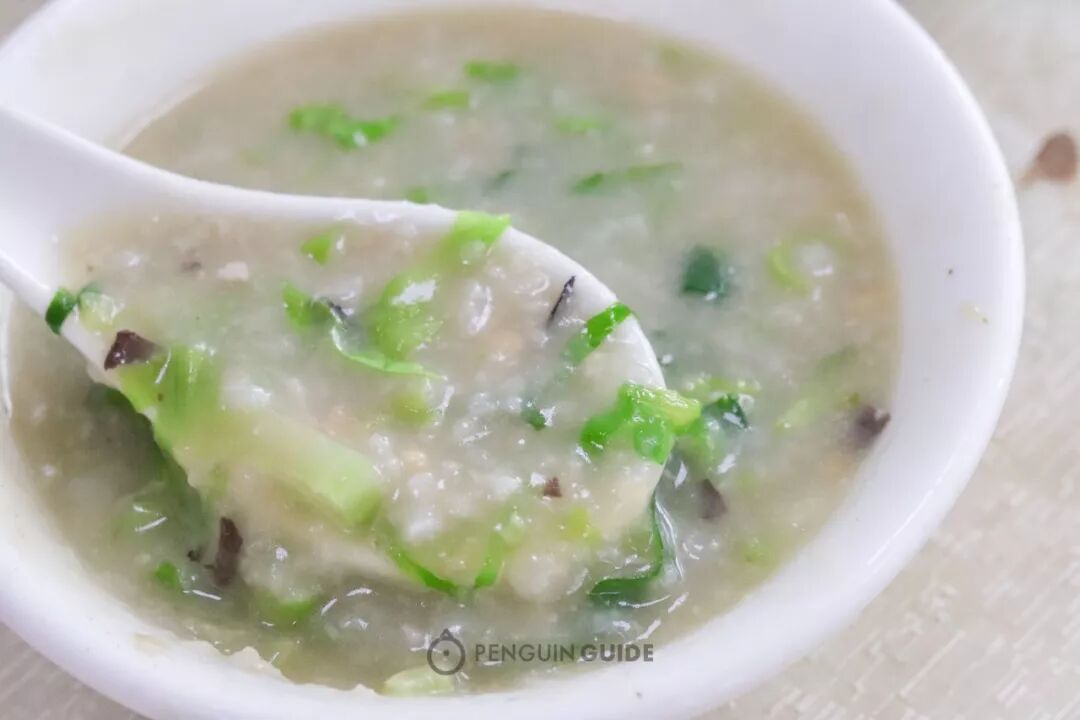 切片是柳叶的形状,完全没有内脏的腥臊气。粥水已经渐渐粘稠,搭配柔软细腻的肝,吃起来有种别样的默契感。
