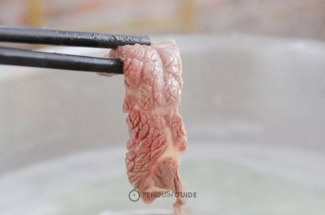 肉片里夹着细腻的油花,烫过之后口感很鲜嫩;