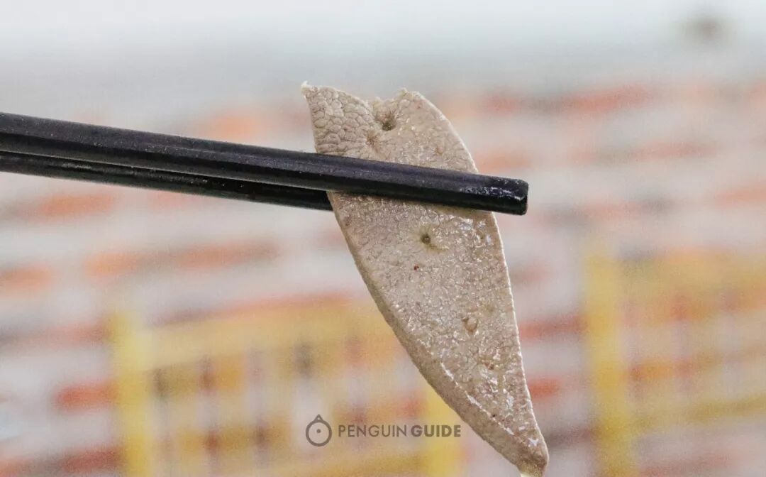 粥水锅里的牛肉,部位没有潮汕牛肉锅分的那么细致,但也绝不是随便切切了事。平均每片三四毫米厚,通常略带一点筋络,嚼起来是爽韧的。