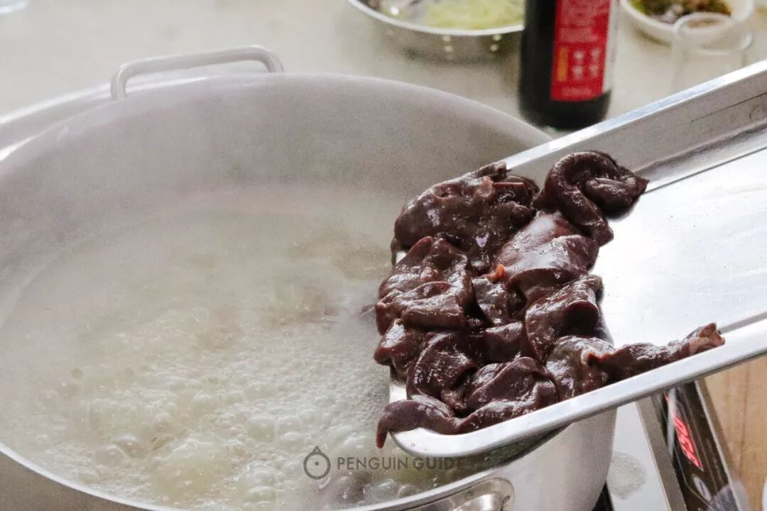 猪红够新鲜,煮过之后还保持着弹嫩,咬下去的口感好像果冻。