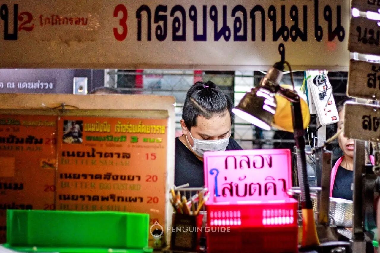 作为全曼谷最受欢迎的烤面包店,看似普通的“夹馅儿面包”每次都要排队取号才吃得到。其秘诀在于店里选用火炉慢烤,而不像其他店用电炉快烤面包。