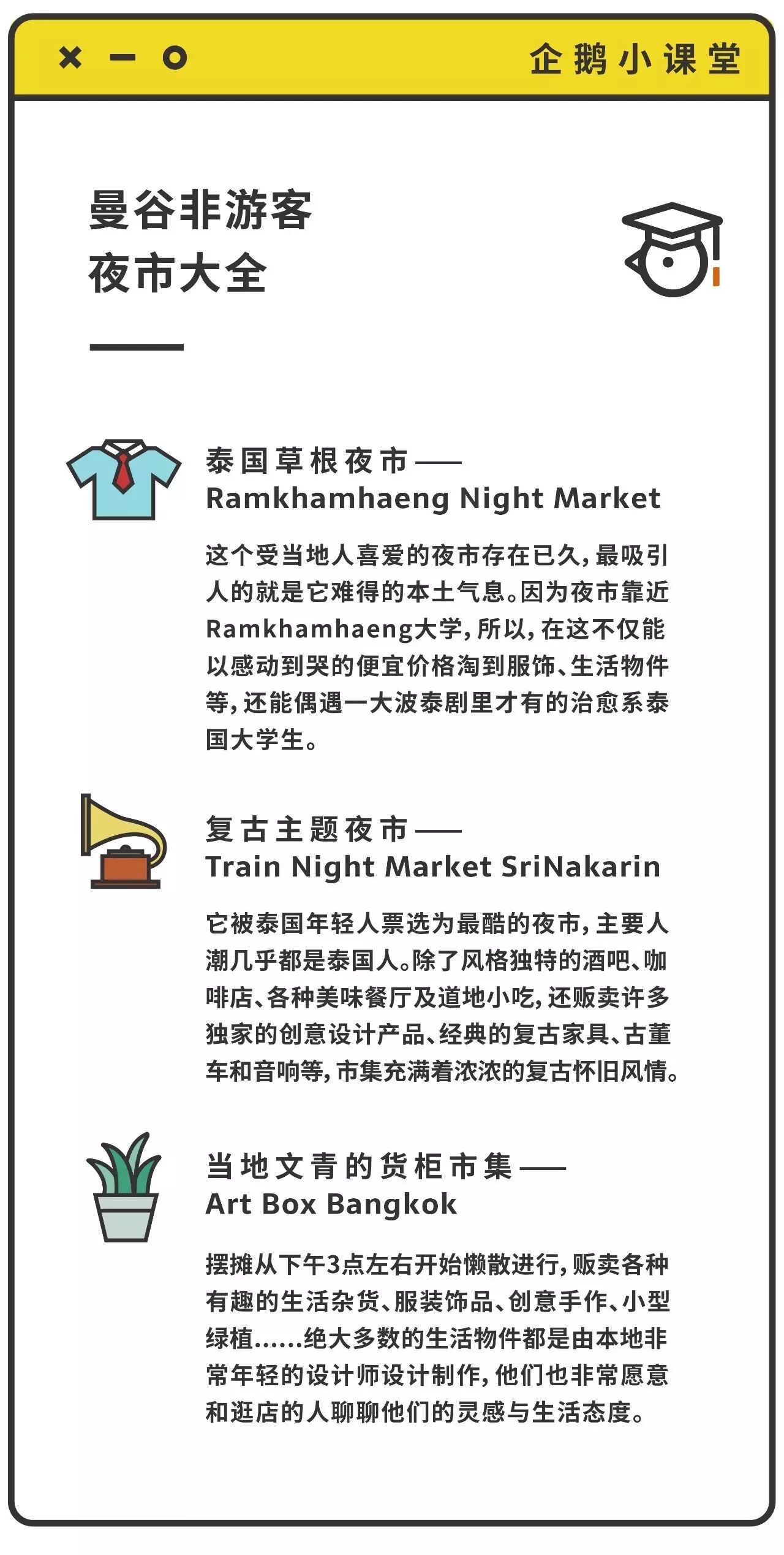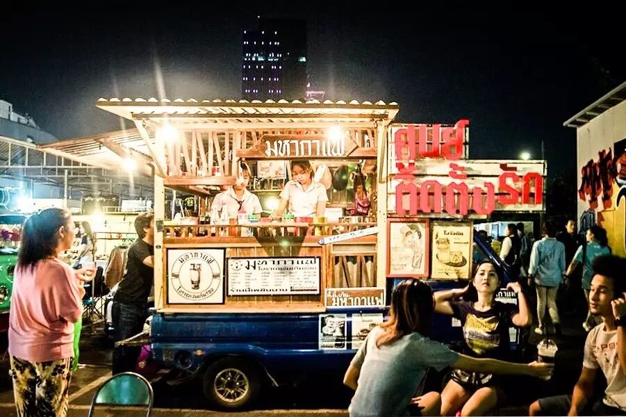 对于爱玩好吃之人,呆在曼谷的最大乐趣莫过于层出不穷的夜市,一到晚上,本地年轻人除了泡吧、逛街和看电影,约朋友去夜市搓一顿、喝一杯,成为时下最流行的方式。