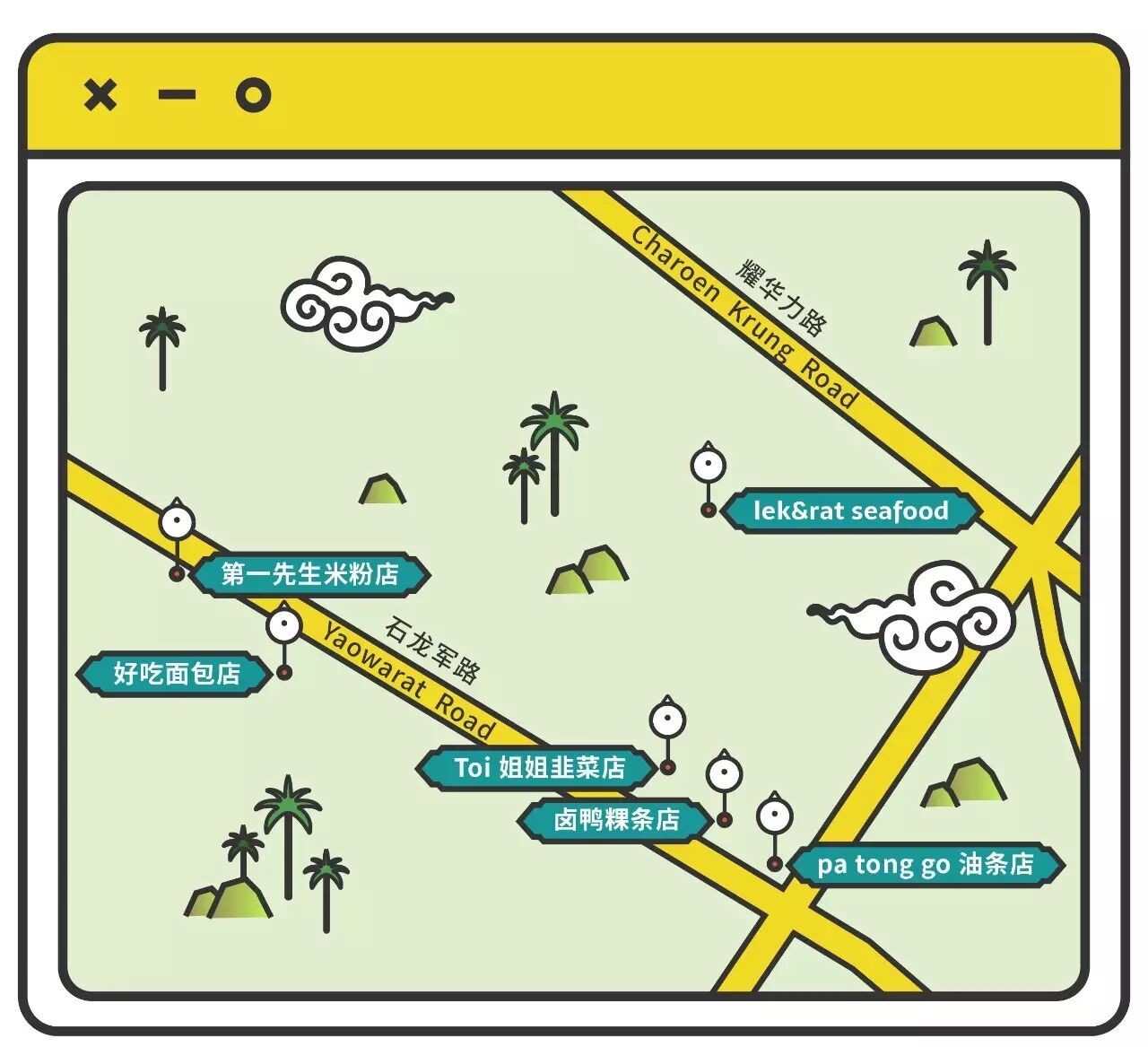 唐人街由耀华力路(Yaowarat)、石龙军路(CharoenKrung)两条大街以及许多街巷连接而成。这里不仅有很大的鱼翅燕窝批发市场,曼谷70%的金店也都集中在这。