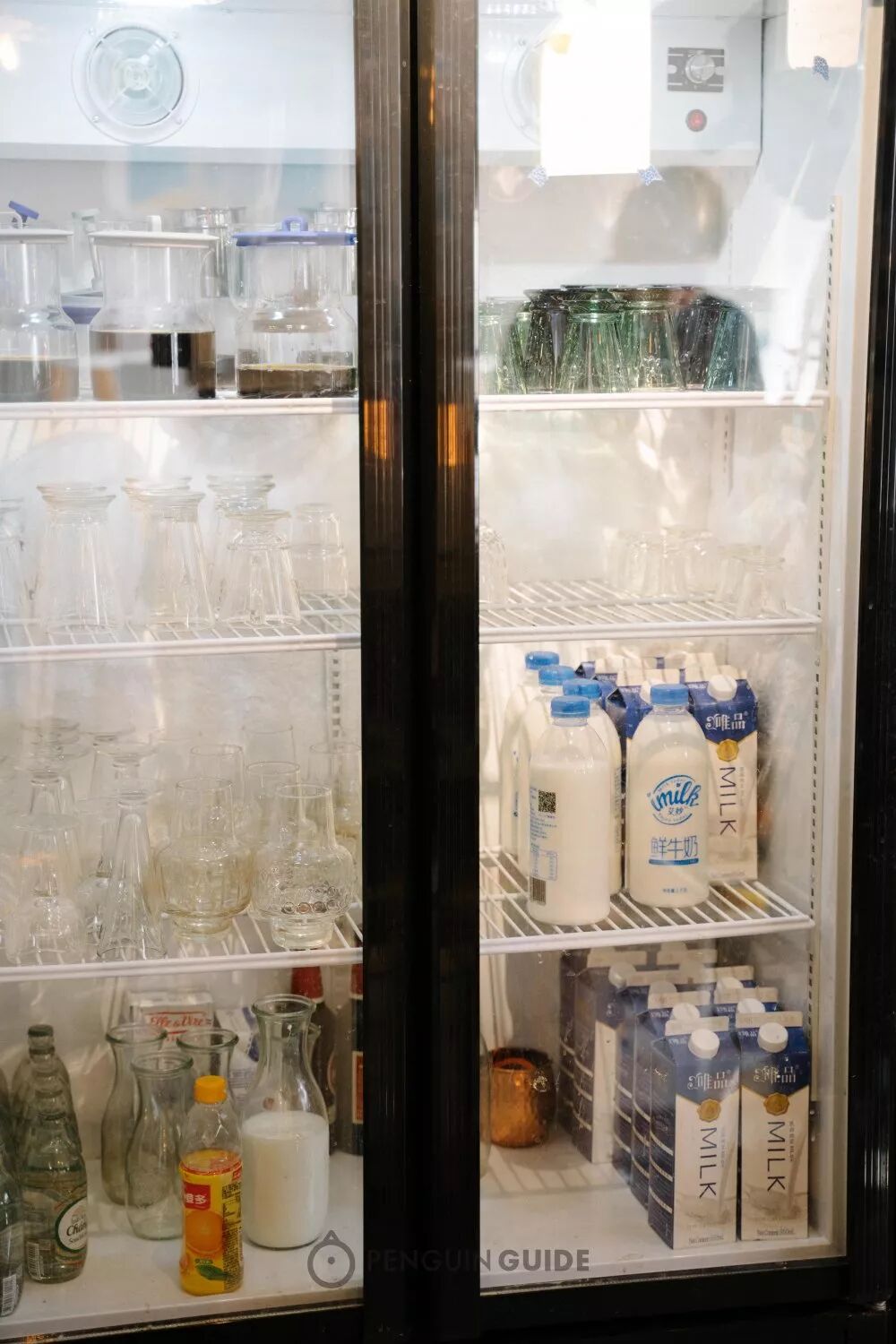除了一黑板的咖啡豆,他们家连牛奶都有3-4种,有市售的,也有自己提纯的。不同的饮品制作时会搭配不同的牛奶。