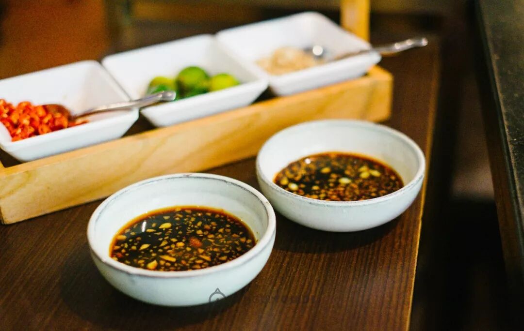 趁着鸡肉还嫩,捞出来在“沙姜+酱油+酸橘子”调成的蘸碟里滚上一圈;