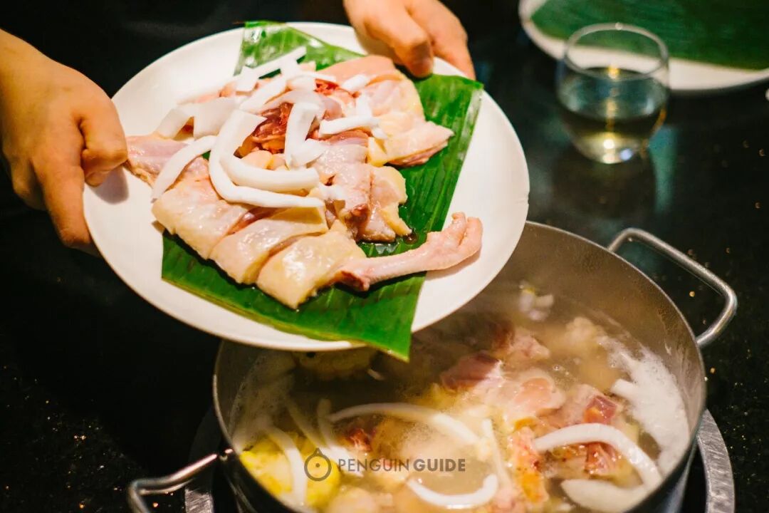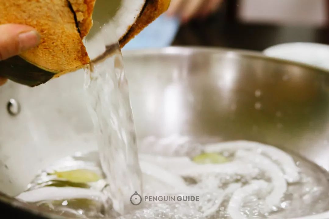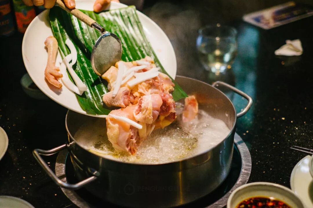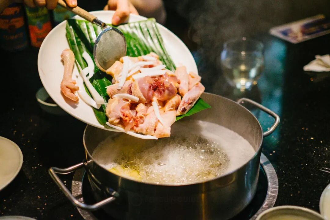 这是一种用椰子水做锅底的鸡肉火锅。“水果+肉”的组合,听起来有点黑暗,(我身边很多朋友第一次听说都觉得没法接受),但吃过之后,无一例外表示:
