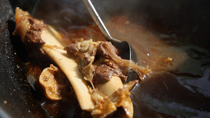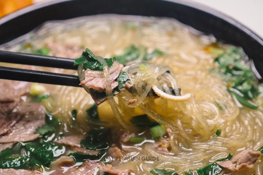 扑面而来的香气,是浓郁的牛肉味道。汤里的牛香更明显,仿佛嘬着熬了很久的牛骨髓,醇厚且富有层次。夹起一筷子,粉丝滑溜,豆饼软糯,千张带点嚼劲,薄牛肉片浸润了汤汁,还原了最原始的鲜美。