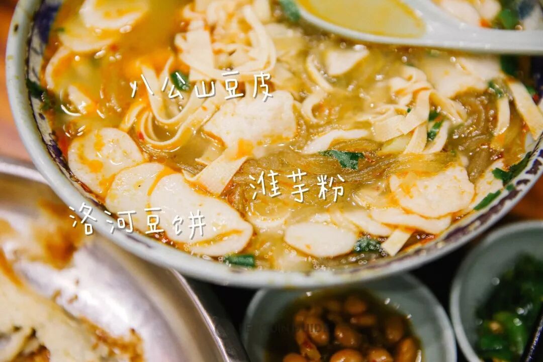 还有里头的其他料,都是当地特色:淮芋粉、洛河豆饼、八公山豆皮。可见当地人对这一碗牛肉汤有多骄傲了。
