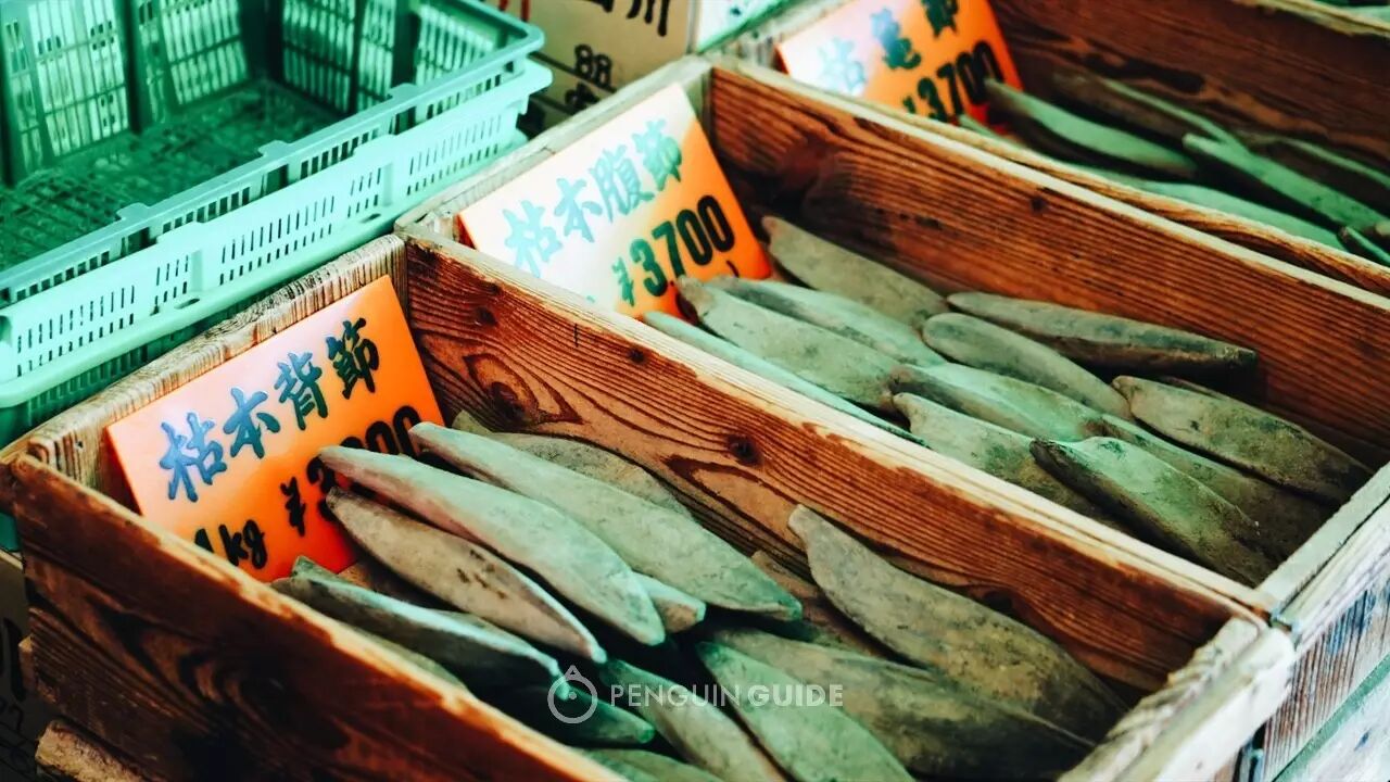 面积达23万平方米的筑地市场里,狭长的过道纵横交错,各个商铺门前摆满各式新鲜鱼类和海产品,种类繁多到难以置信。每日有多达数百种来自日本甚至全世界的海产新鲜运抵。