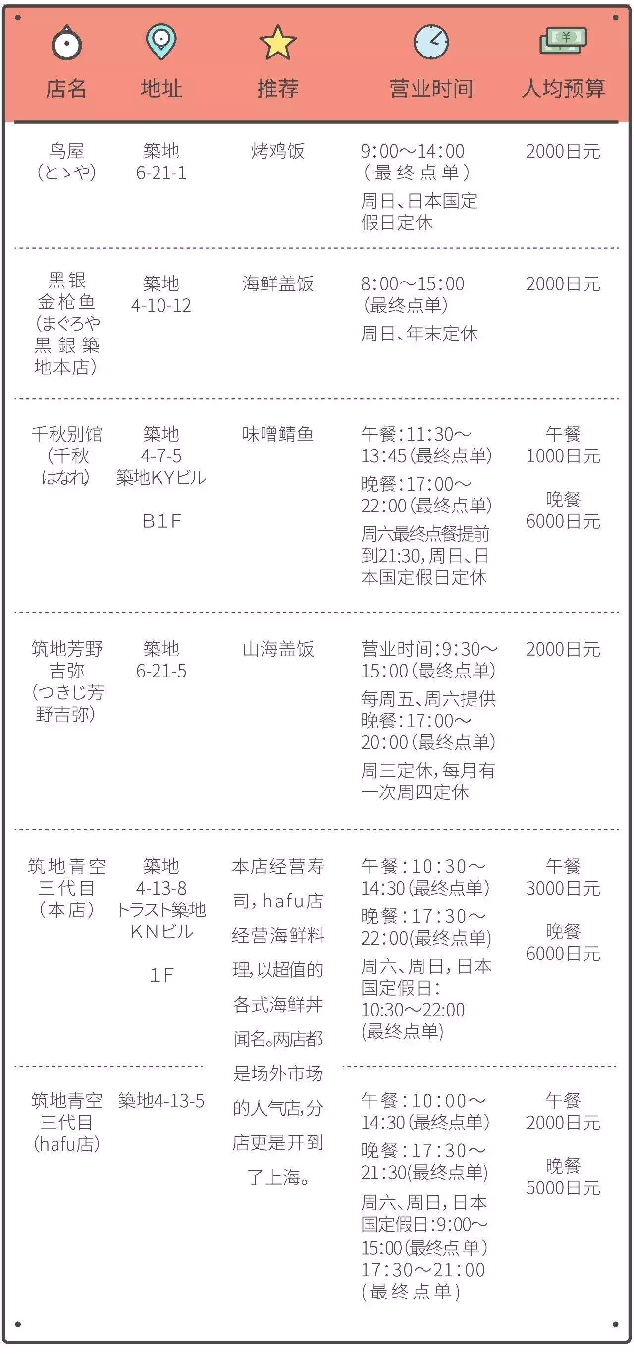 重点推荐:说的是那些运用筑地市场的食材,在烹饪上各具特色的餐厅。 特别适合不习惯生食或者想在筑地市场品尝更多不同料理的你。