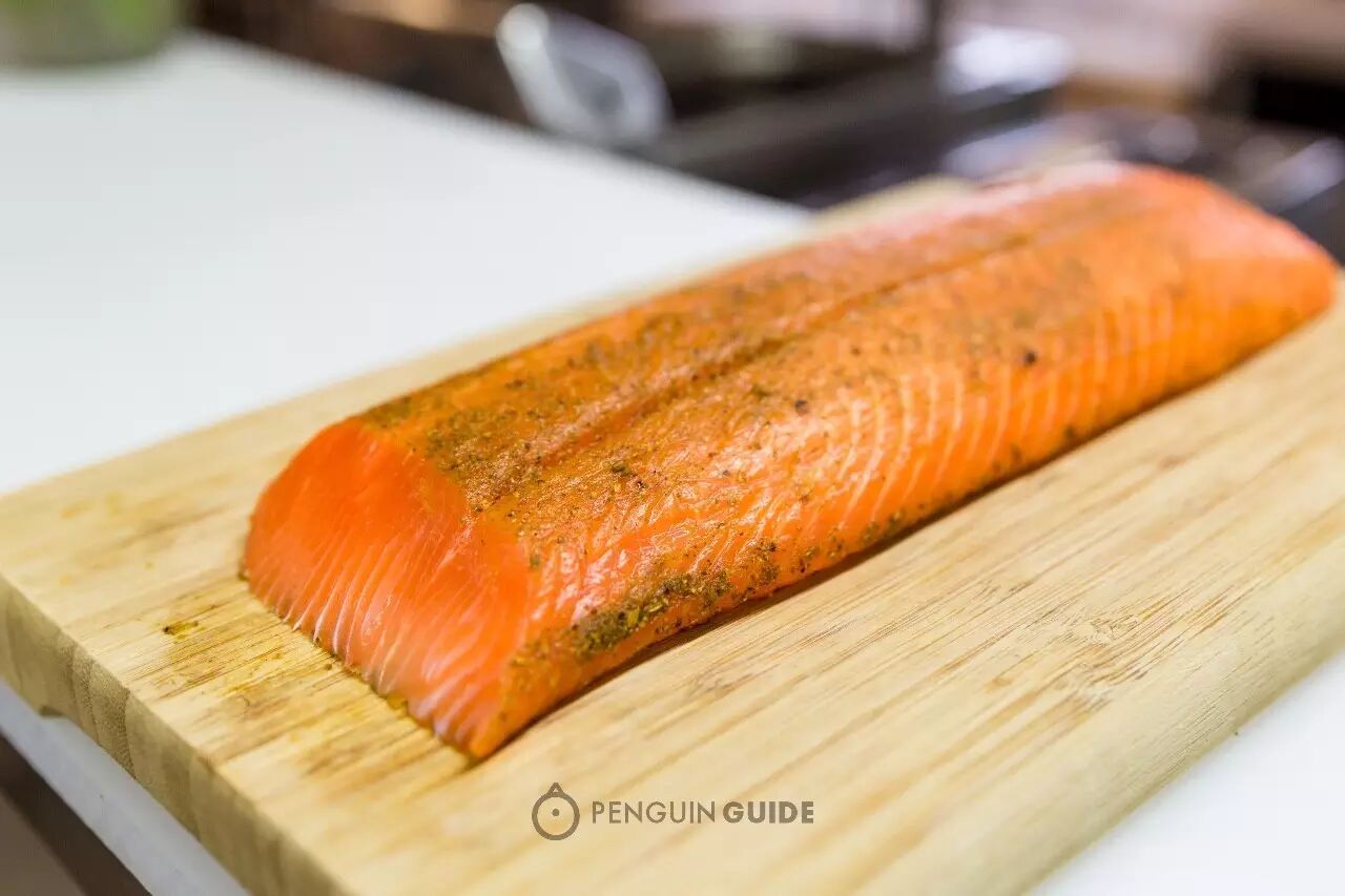 煎鲑鱼排,火候和时间挺重要。国王鲑脂肪含量较高,相对来说肉比较不容易变柴。厚厚一大块三文鱼排,外层用黄油煎熟,顺纹切开,最中心还保持软嫩,配一些烤过的莓果,是当地人喜爱的食用方式。