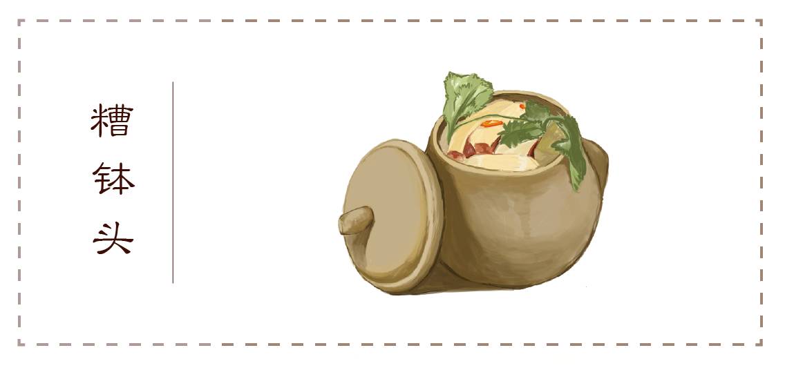 糟钵头,原本是一道川沙农家菜,将废弃的猪下水(顺风、猪肚、猪肝、猪肺……)放到砂锅里和糟卤一起笃。