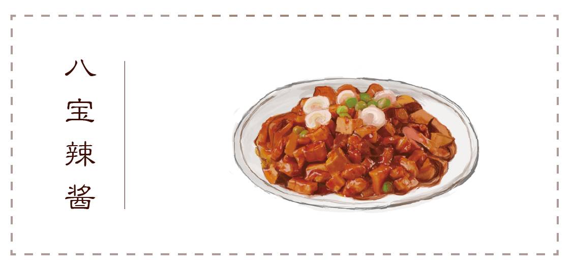 八宝辣酱,是本帮必点招牌菜,其实最初的雏形只是肉丁炒豆干,加上辣酱和郫县豆瓣酱,便宜又下饭,是老城厢劳动阶层的最爱。