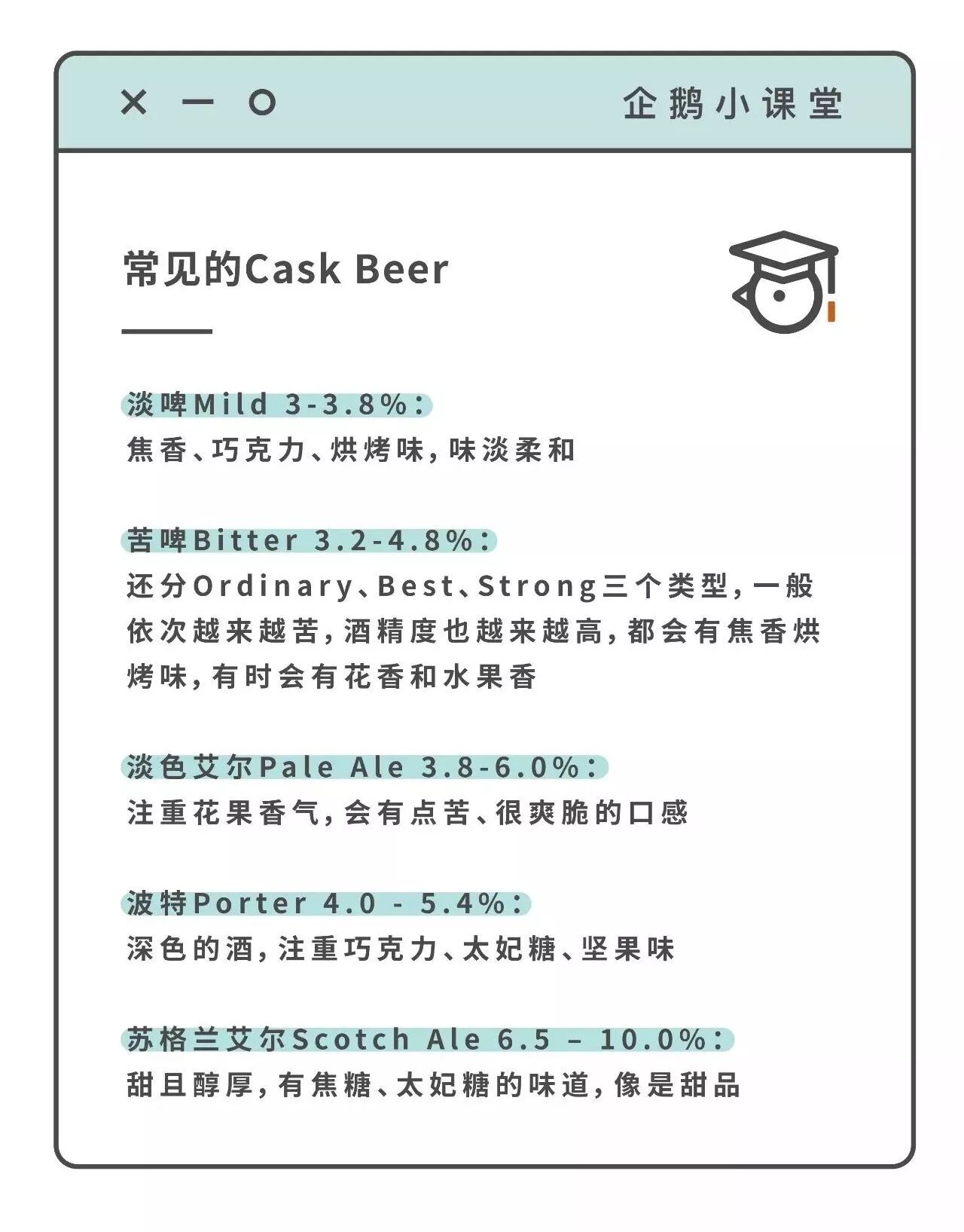 由于Cask的系统不同,各地的桶啤也会呈现不同面貌。苏格兰南部的桶啤大多没有泡沫,口感顺滑,也是更古老的风格。