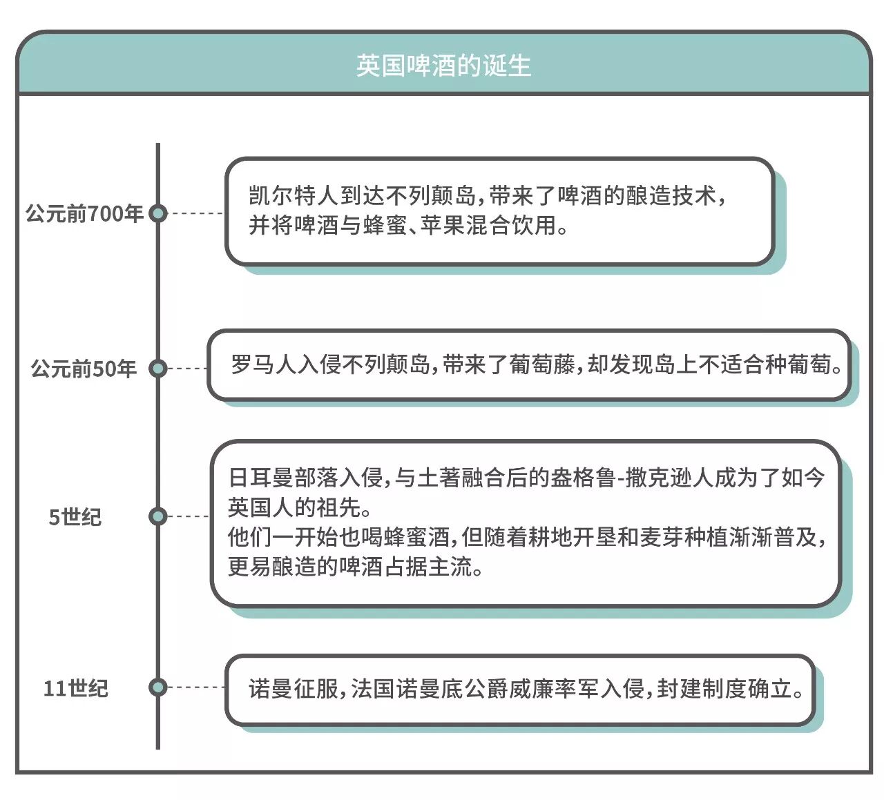 在诺曼征服以前,蜂蜜酒和啤酒是不列颠岛上最流行的饮料。当时人们还不会把水烧开了喝,生水中细菌众多,极易致病。而酒精有杀菌作用,因此啤酒这样含酒精的饮料,才是当时人们主要的水分来源。