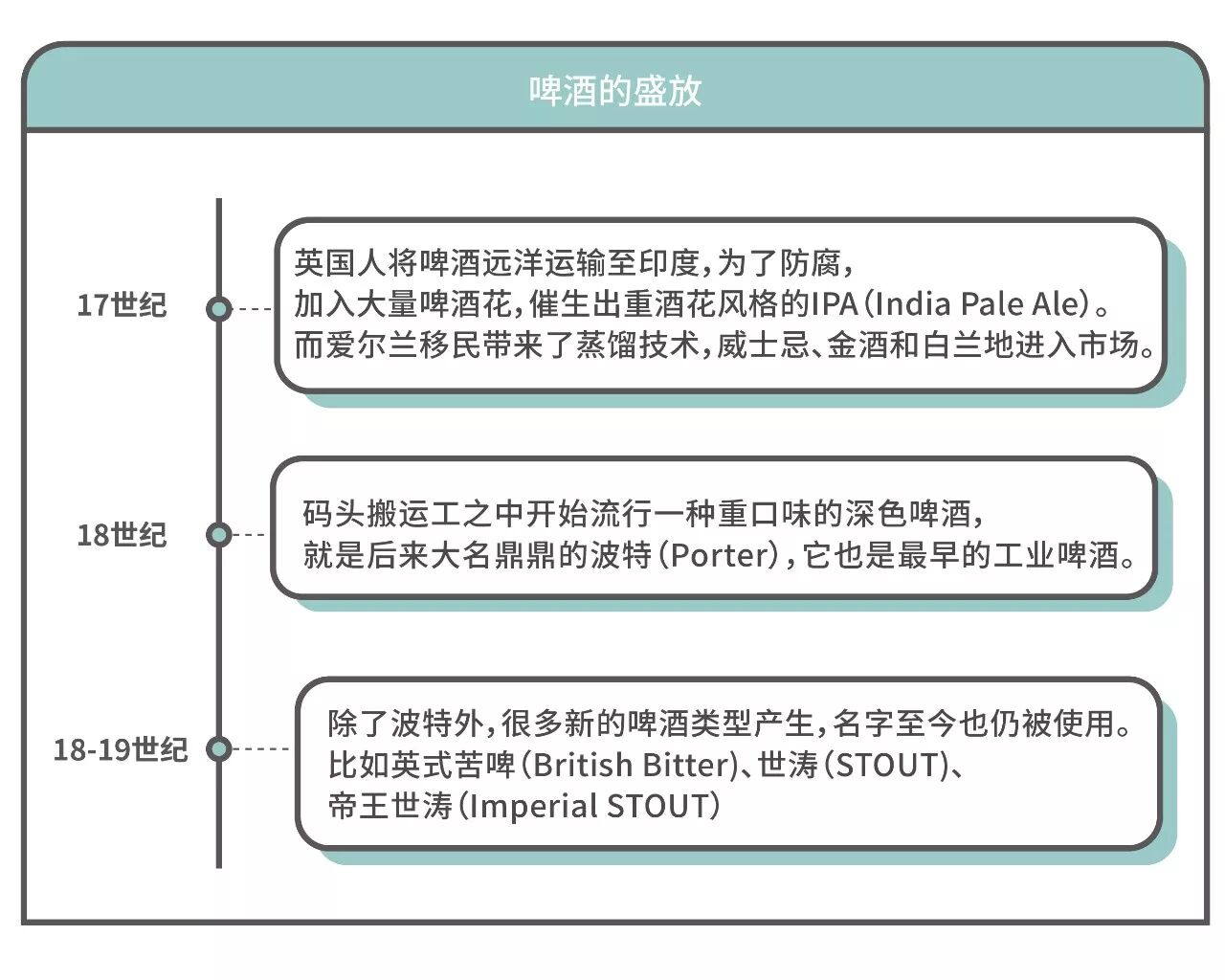18世纪中后期,随着工业革命的兴起,波特啤酒开始流行并大规模生产,又衍生出世涛、帝王世涛等种种风格。