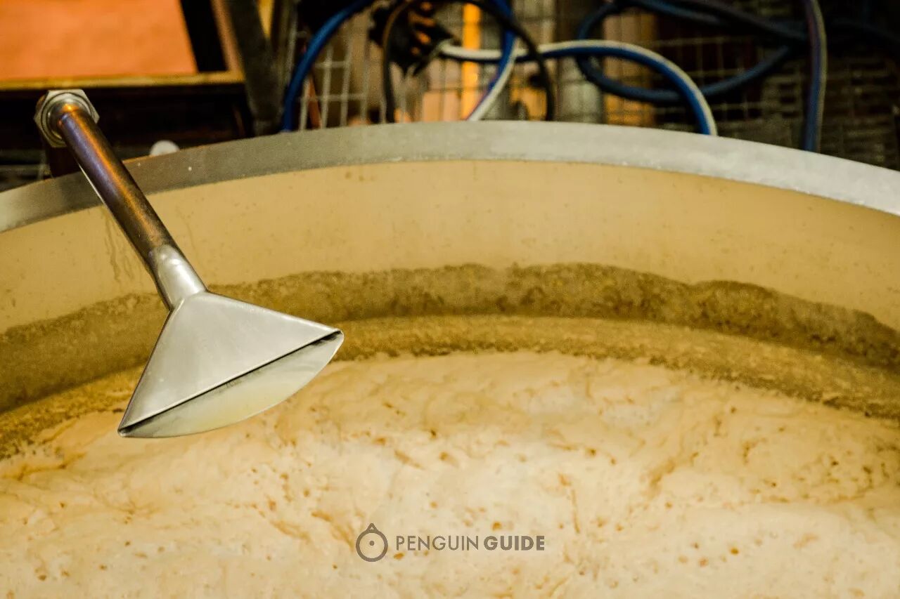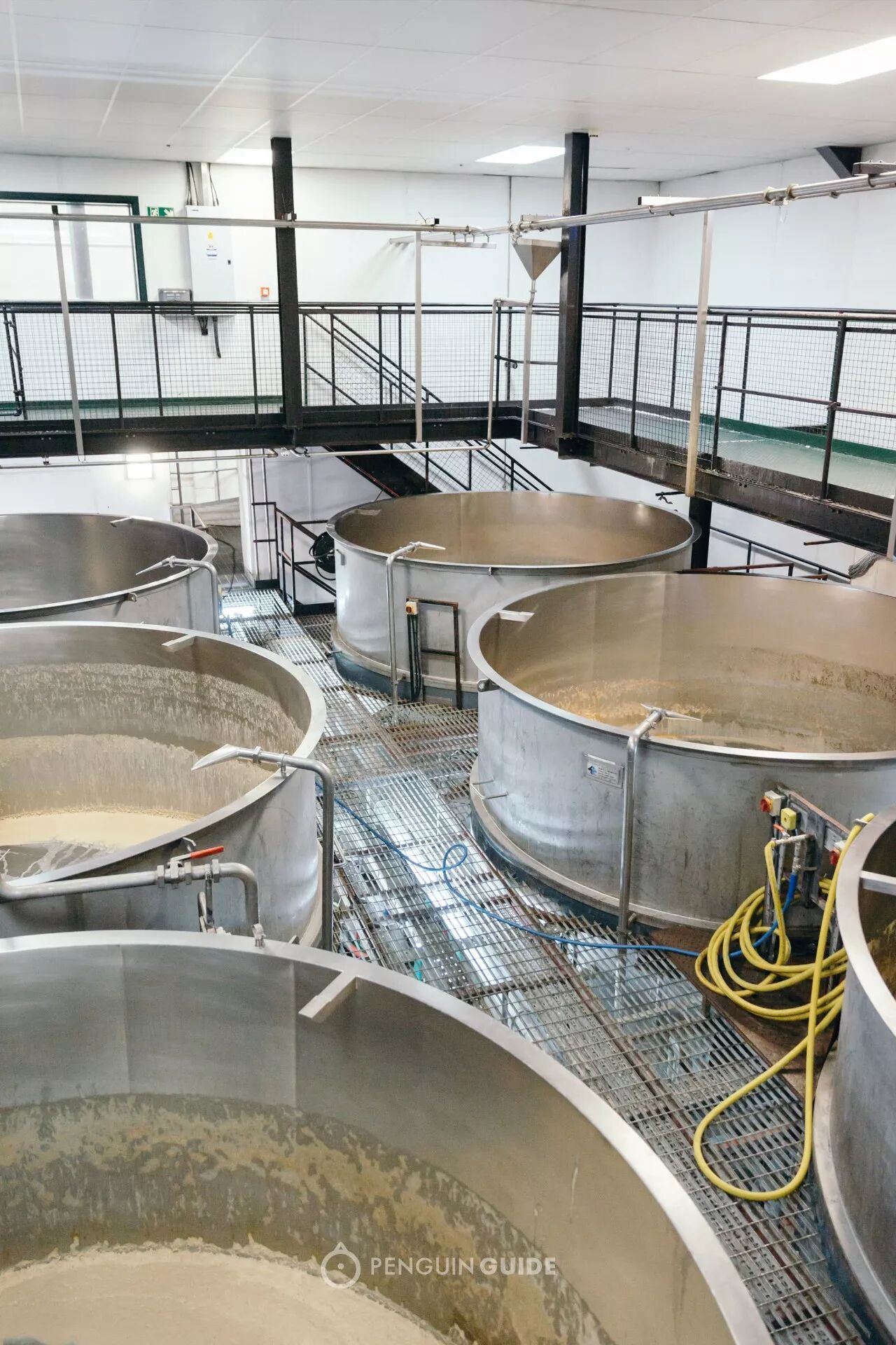这里所有的酿造设备,都是英国本土制造。麦芽经过处理并碾碎后,在麦芽浆桶里完成糖化、过滤和喷水。