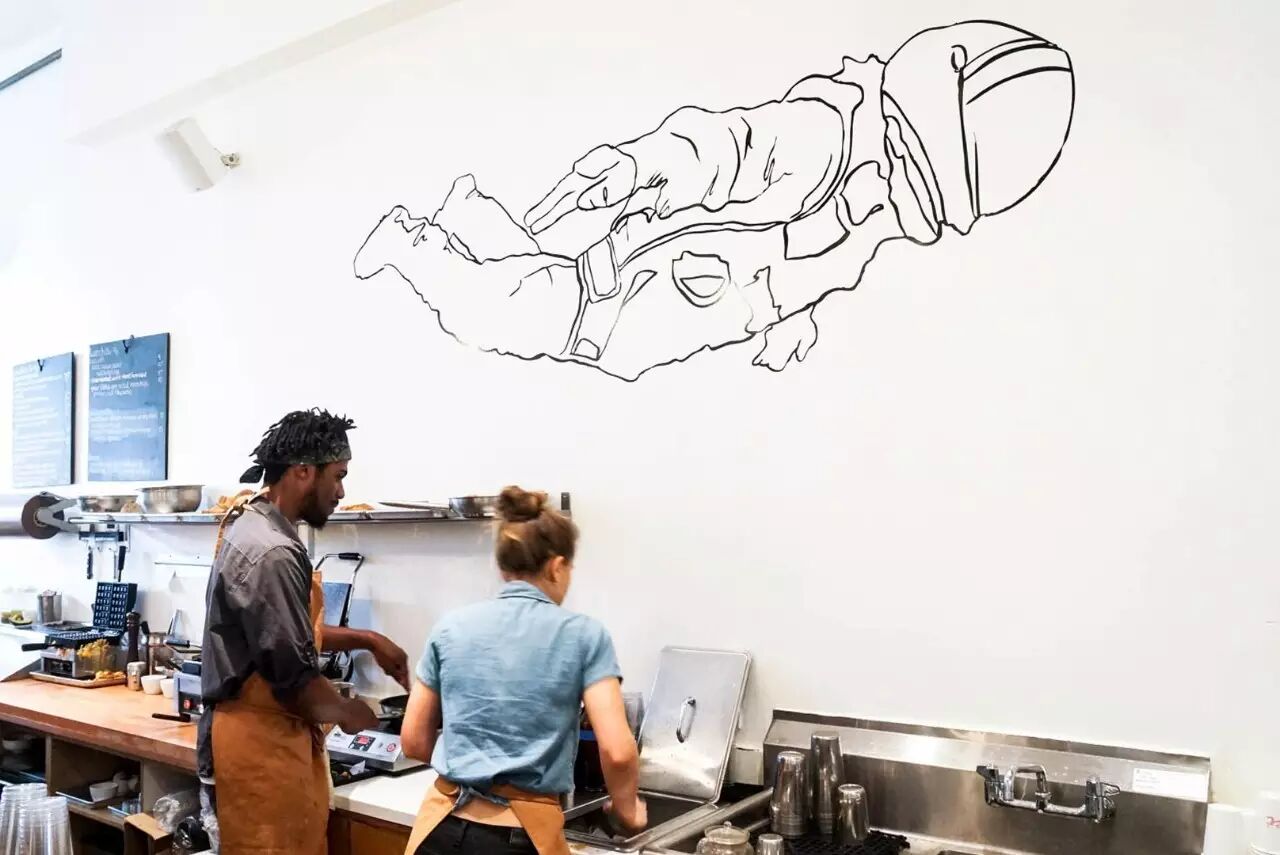 原来,Bar Nine是美国第一批使用ModBar的咖啡馆,ModBar将所有咖啡机的元件藏在桌面下,只保留了咖啡的冲泡头以及蒸气棒,目的就是为了消除咖啡师与顾客之间的隔阂,更好地交流,这跟黑鹰咖啡机有着异曲同工之妙。